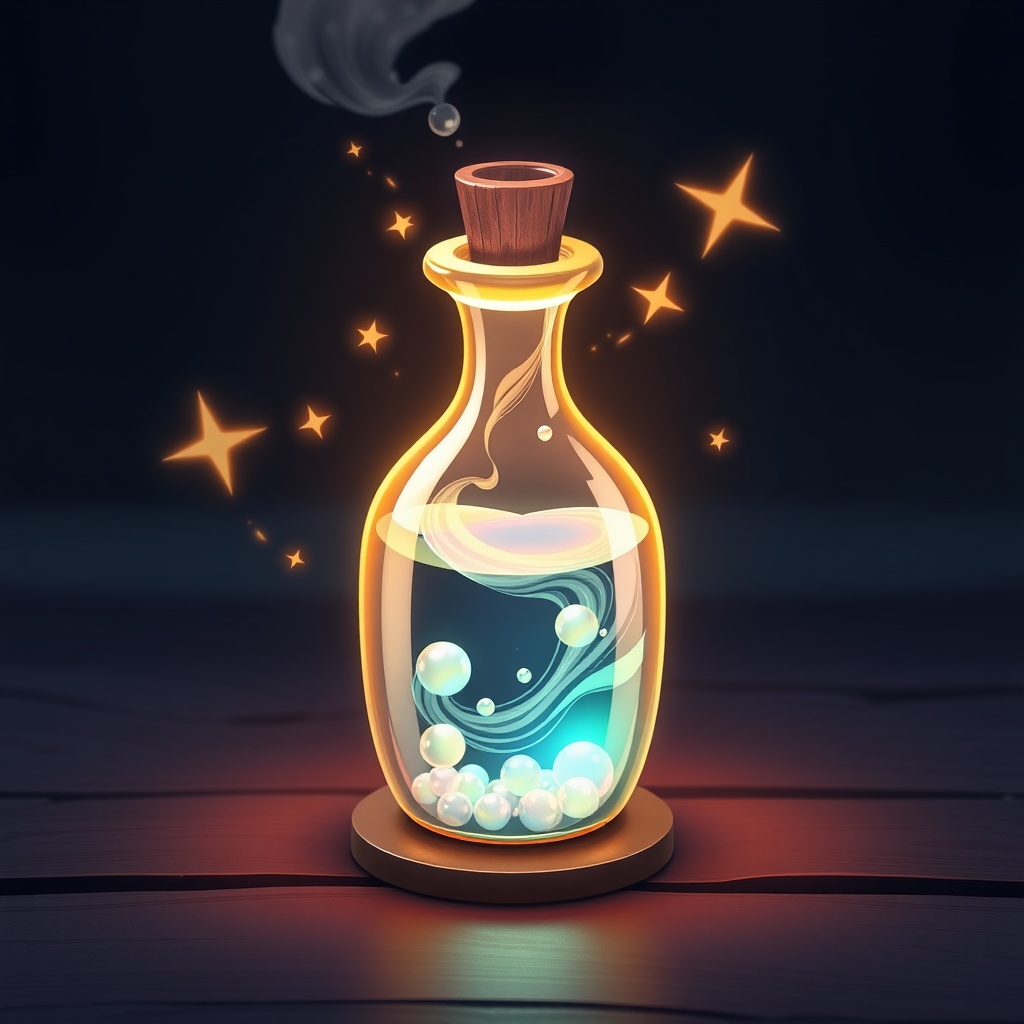 "main_object": "crystal potion bottle with glowing liquid",
