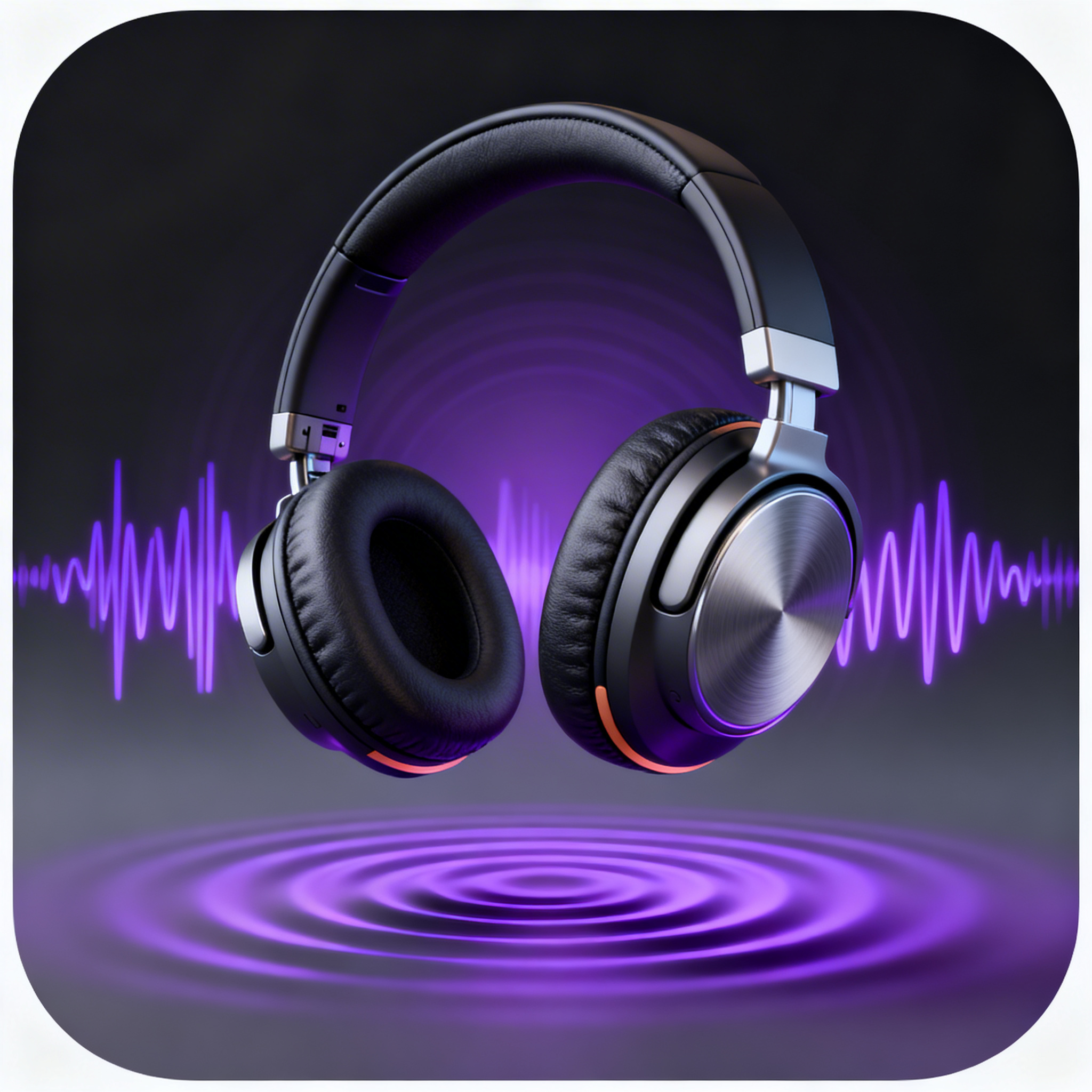 "style": "stylized 3D app icon, sleek audio aesthetic, premium materials, sound visualization, high-end music app feel, immersive and rhythmic",
